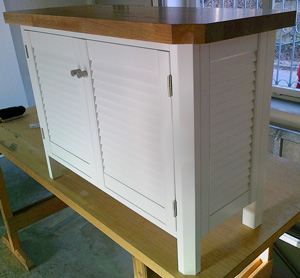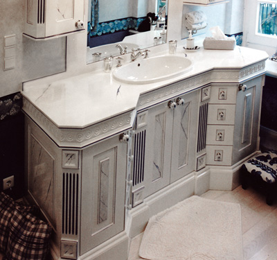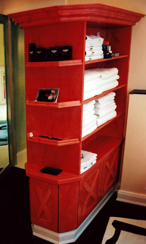 Raumteiler als Handtuchschrank mit Fassmalerei
